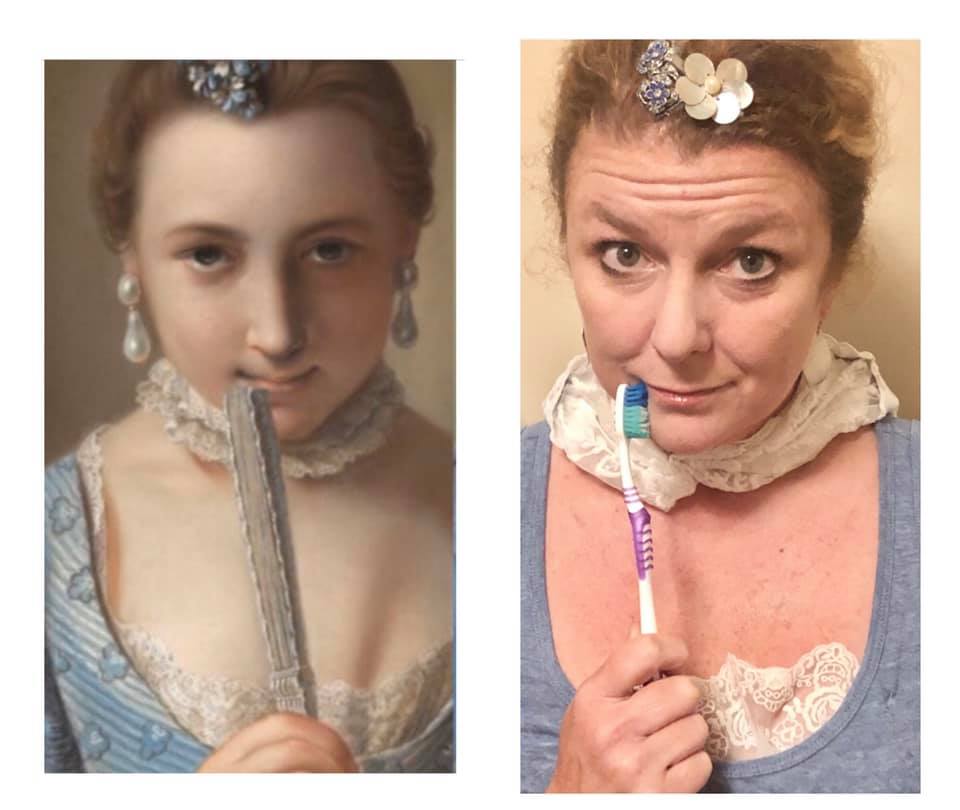 I’ve come to notice in the past year or so….you know, the pandemic we’re all muddling through….that smaller audiences are suddenly more my style. When the world first shut down last March, my daughter became my audience. God bless her. She’s a patient, patient human. I didn’t handle the shelter in place well at first. I needed people. Friends. I needed my audience. Oh….my poor child. Don’t get me wrong, she was having fun. But due to the fact that she was 13 at the time, about to turn 14….she was, by the official law of all teenagers, fighting every urge to admit that her Mom was funny in any way. We made videos to post to social media….hoping to entertain our “audience”….as they were all quarantined as well. I was convinced that every person I knew through any social media platform needed a laugh, and I had somehow bestowed it upon myself to provide that laugh for them. I then went through my “famous painting re-creation” phase…where I would spent countless hours dressing up like people in historical artwork, adding a twist of humor–of course– and yes, Ella was my photographer. She somehow didn’t find it amusing at all when I insisted that she take at least 30 pictures of me in almost the same exact pose, so that I could go through all the pictures and choose my favorite.