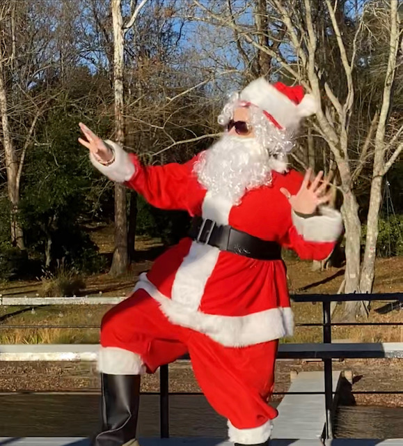 The day after Thanksgiving, I went down to the dock, in full Santa gear. Big speaker in tow, ready to play some music. Some dancing music. I cranked it up. And I stared to dance. I danced and danced. Within five minutes people were honking their horns as they crossed the bridge. Arms were waving out the car windows. People I know were sending me texts…”OMG! Was that you I just saw dancing on the dock? That was hilarious!” I was adding a little EXTRA to their day.